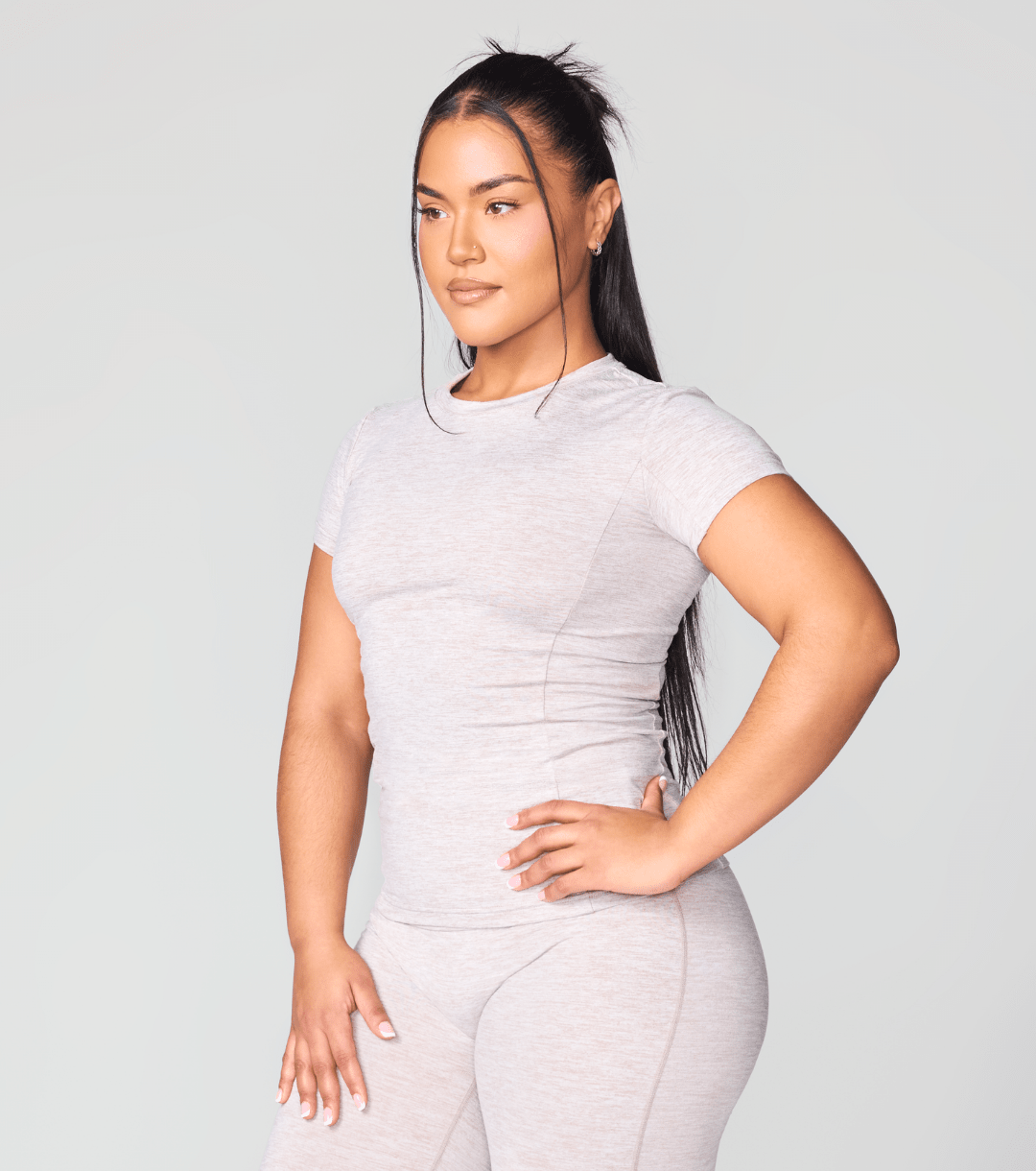 Step into bold comfort with our Full-Length Fitted Crewneck Tee, crafted from our breathable, sculpting CONFIDENCE HEATHER FABRIC. Designed for those who love to take risks, this tee features a sleek, fitted silhouette with medium compression to support you through every move.