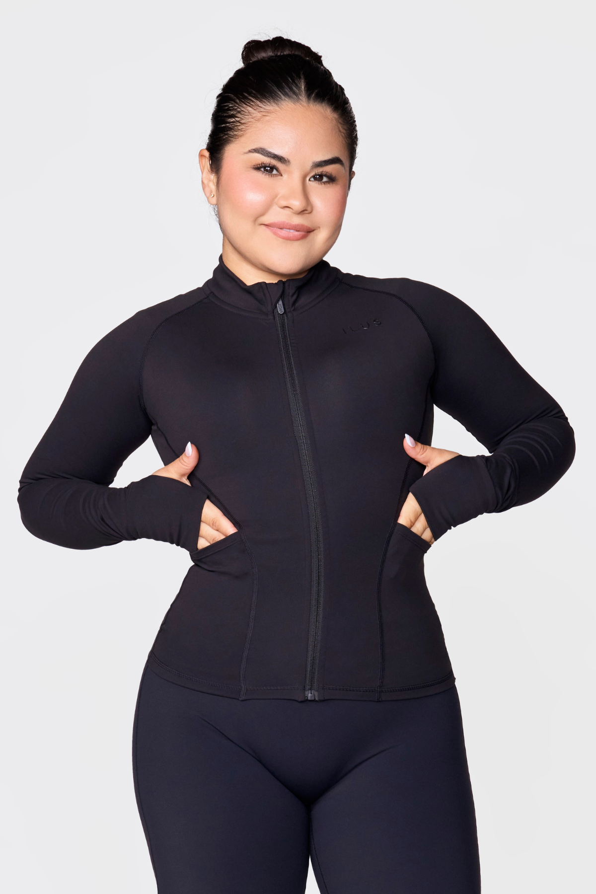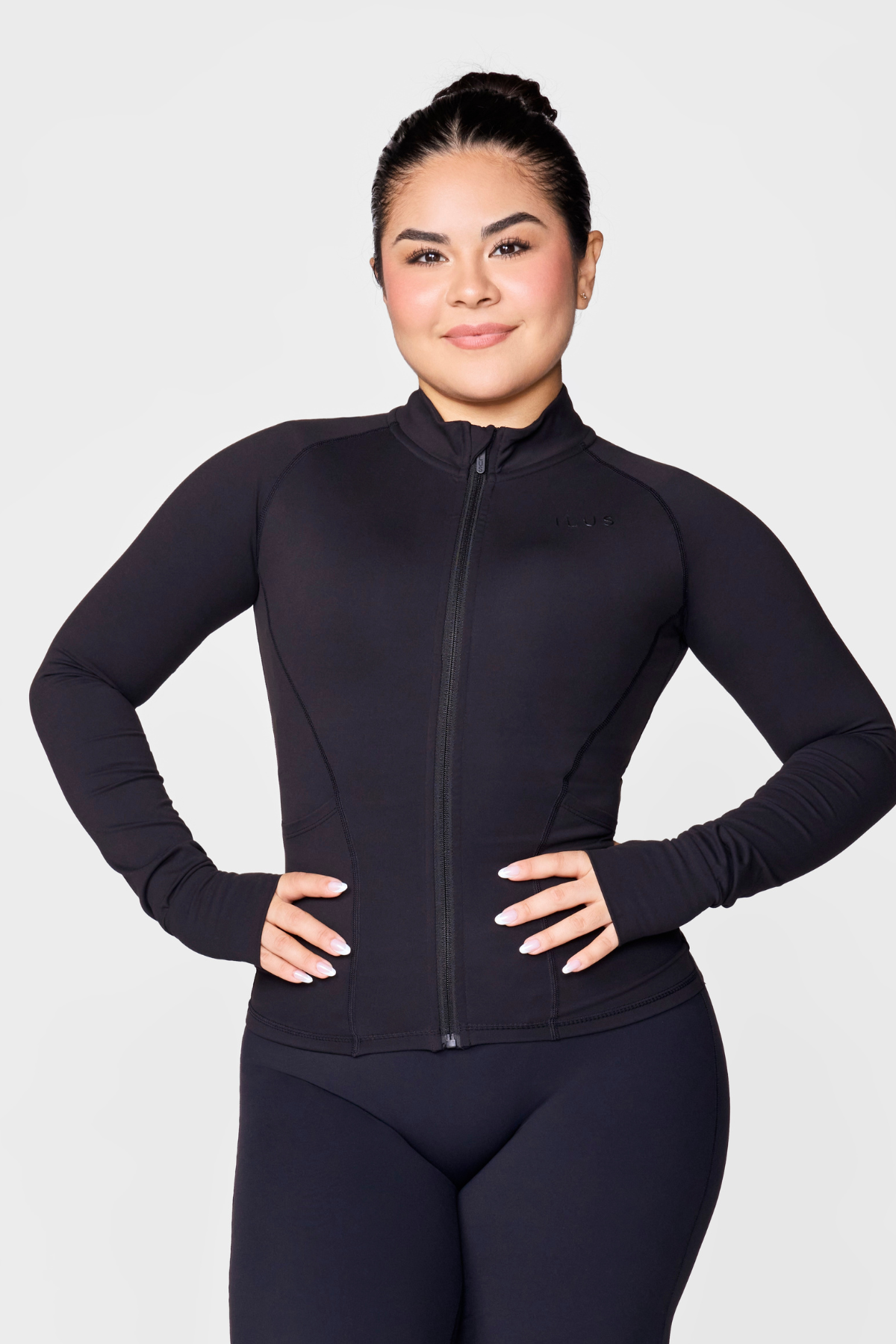 lling collection, this jacket delivers a buttery-soft feel without compromising performance. Deep front pockets keep your essentials secure, while contouring seams create a flattering silhouette. Signature thumb cutouts on the sleeves add contemporary flair, and our custom ILUS zipper ensures every detail reflects your bold style. Quick-drying technology keeps you comfortable through any activity. Size up for an ideal fit.