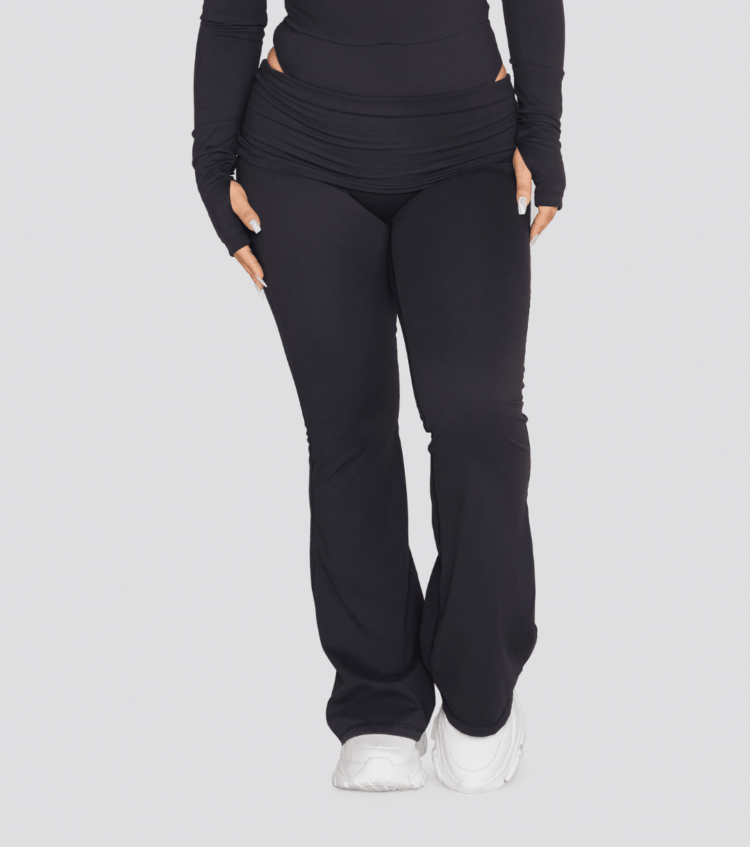Introducing your new favorite fit — the REVEAL FOLD OVER LEGGINGS. Designed to sculpt, support, and move with you, these leggings feature a flattering fold-over waistband that offers both comfort and tummy control, while enhancing your natural curves. The subtle flare at the ankle adds a modern, feminine touch that transitions effortlessly from gym to street.