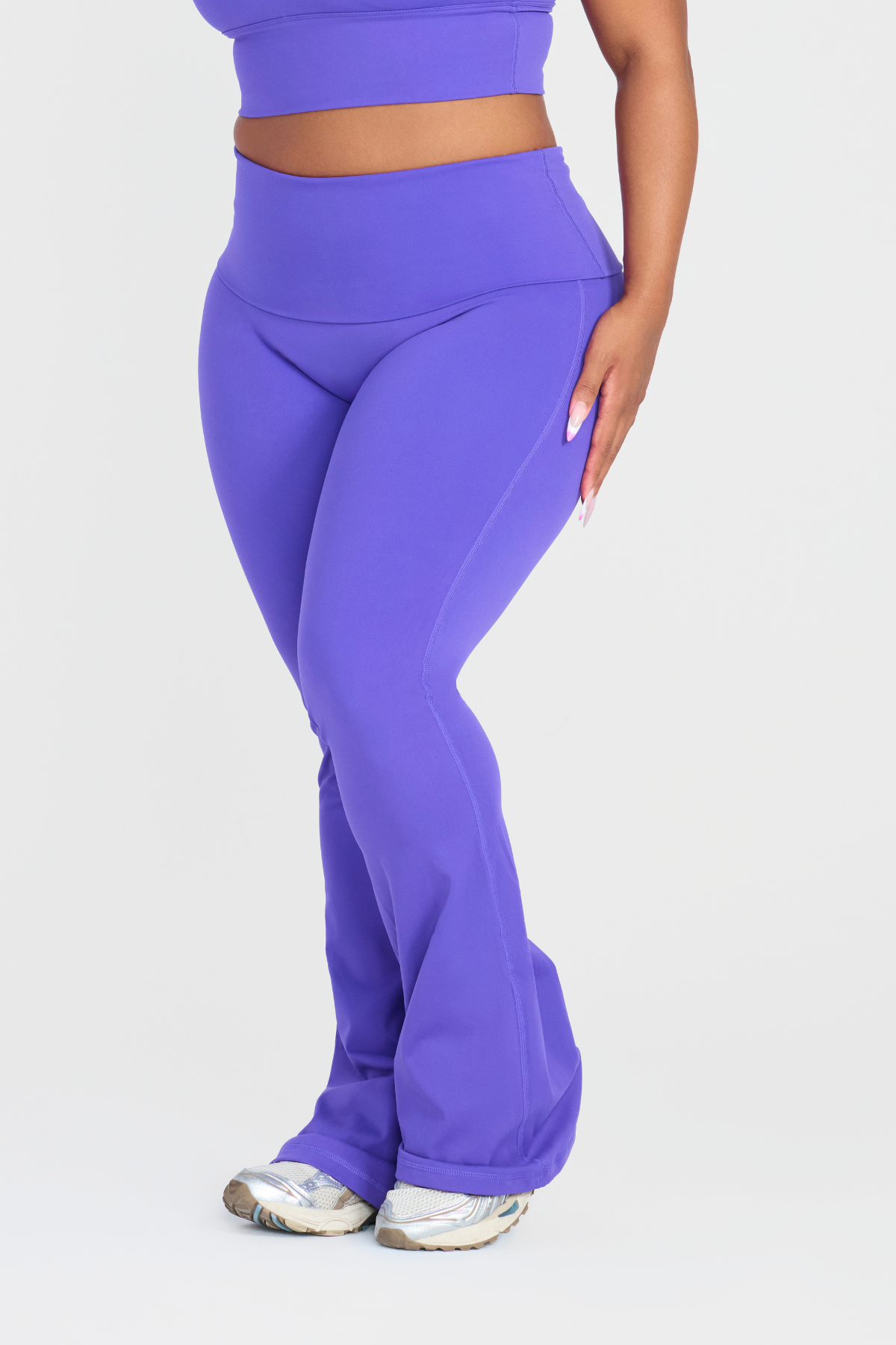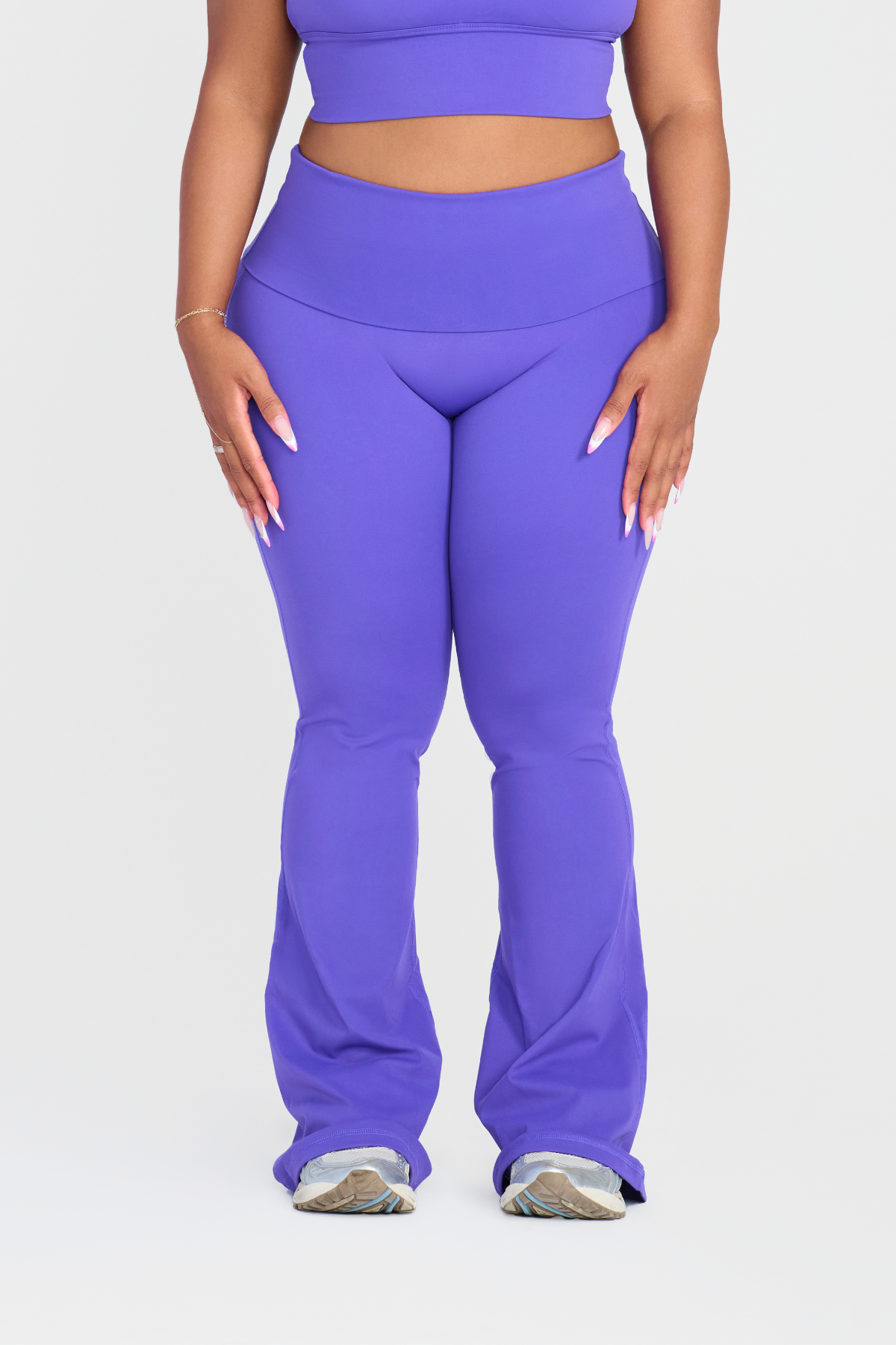 Introducing your new favorite fit — the REVEAL FOLD OVER LEGGINGS. Designed to sculpt, support, and move with you, these leggings feature a flattering fold-over waistband that offers both comfort and tummy control, while enhancing your natural curves. The subtle flare at the ankle adds a modern, feminine touch that transitions effortlessly from gym to street.